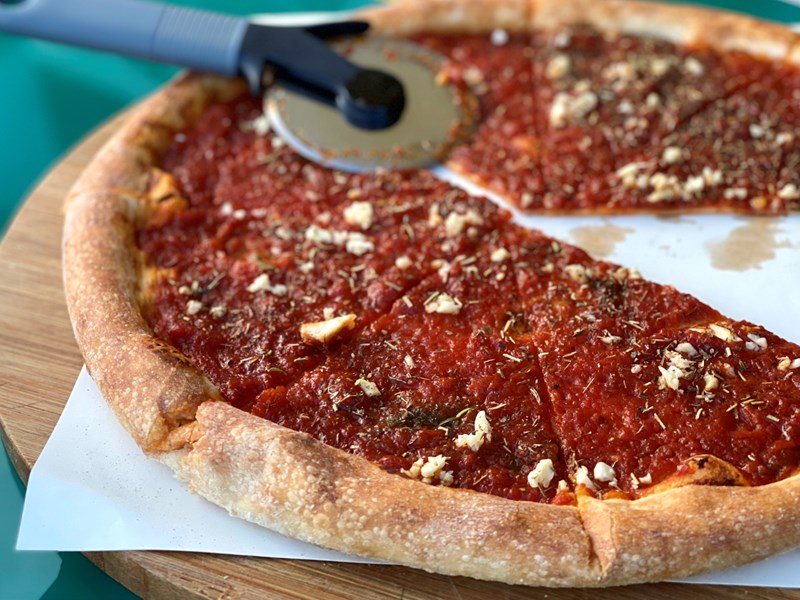 This small pizzeria offers vegan cheese that you can choose with every pizza. Very nice waitress who double-checked everything with the kitchen and after our order found out that all pastas contain egg and immediately let us know to change our order. They're right under Gavino's.