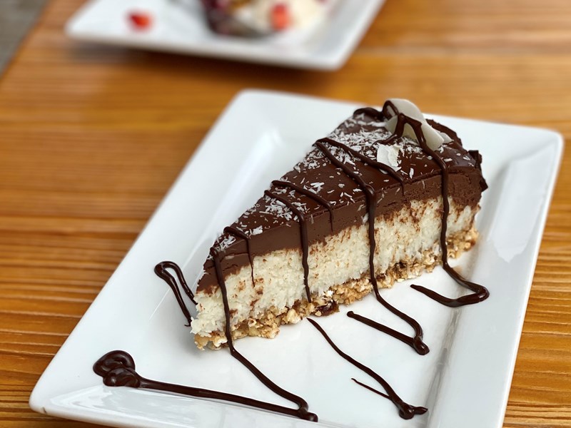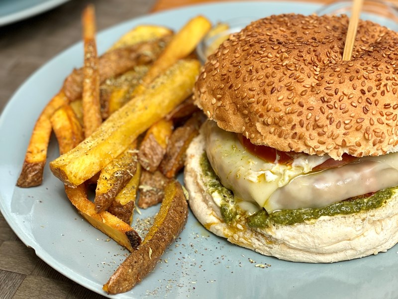We tried the BBQ chili burger, Cream lentil curry, Traditional Madeiran bicalhou cakes (but vegan, without cod, bounty cake, cherry cheesecake, Sunflower smoothie & Popeye juice.