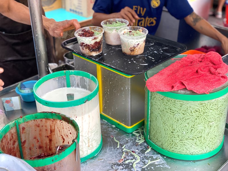 - 3-4 - Chendol - this dish is popular all over the country, but the Teochew Chendul on Penang Road is legendary. They have been here since 1938 and de (almost all locals). However, they serve the chendol so quickly that it's your turn within a minute. The really delicious: creamy coconut milk with shaved ice, pandan noodles, all kinds of tapioca jelly's (no gelatin, always check that) and red beans that have been boiled for 6 hours. A special combination that works!
