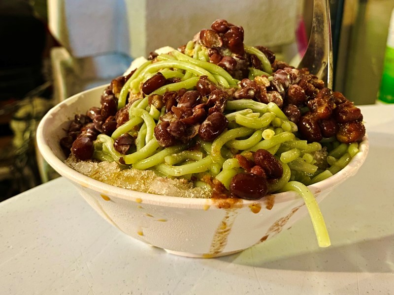 - 5 - Ice Kacang - a sweet x savory dessert or snack similar to chendol. Usually made with syrup in flaked ice corn, beans, jelly's in different flavors and colors and sweet syrup.