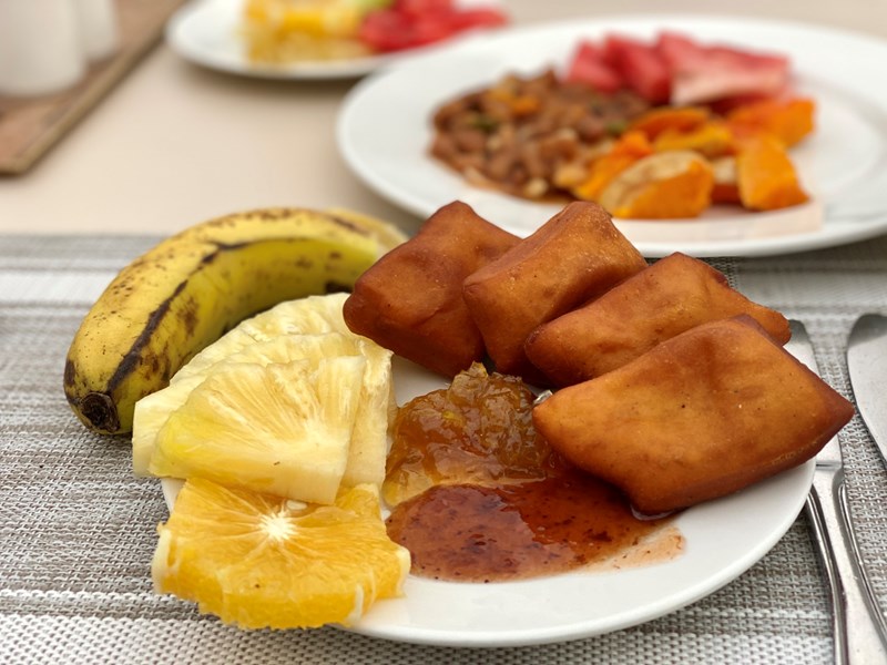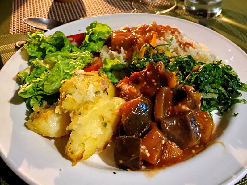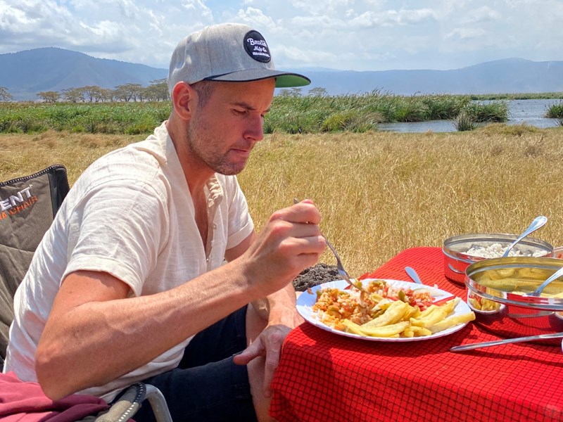 We thought that as vegans, we would eat somewhat simpler and more boring meals during our safari, but nothing could be further from the truth! We were been spoiled from start to finish with the most tasty dishes in huge portions and and all the vegan snacks we could wish for. Breakfast and dinner is usually served at the accommodations, of which some pictures are included above. The chef at each accommodation will give your guide your packaged vegan meal which you'll have at a nice spot during your safari.