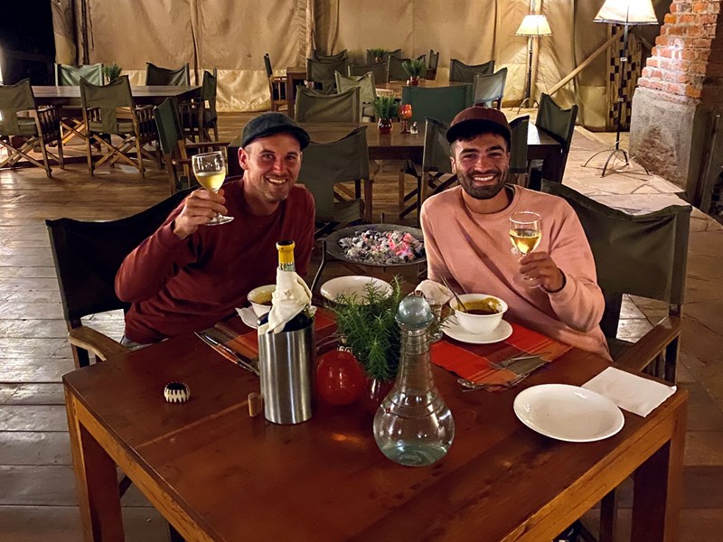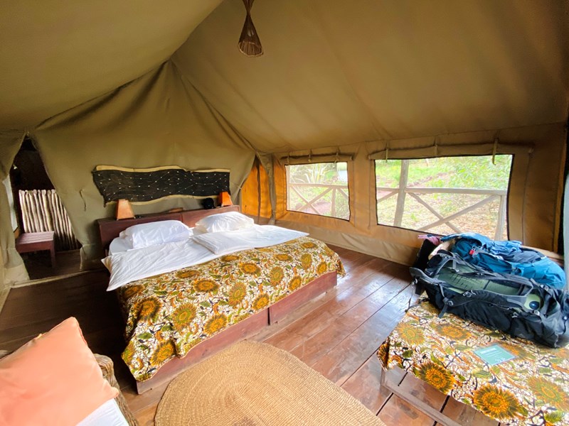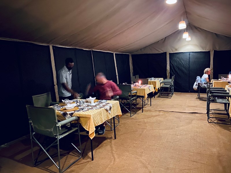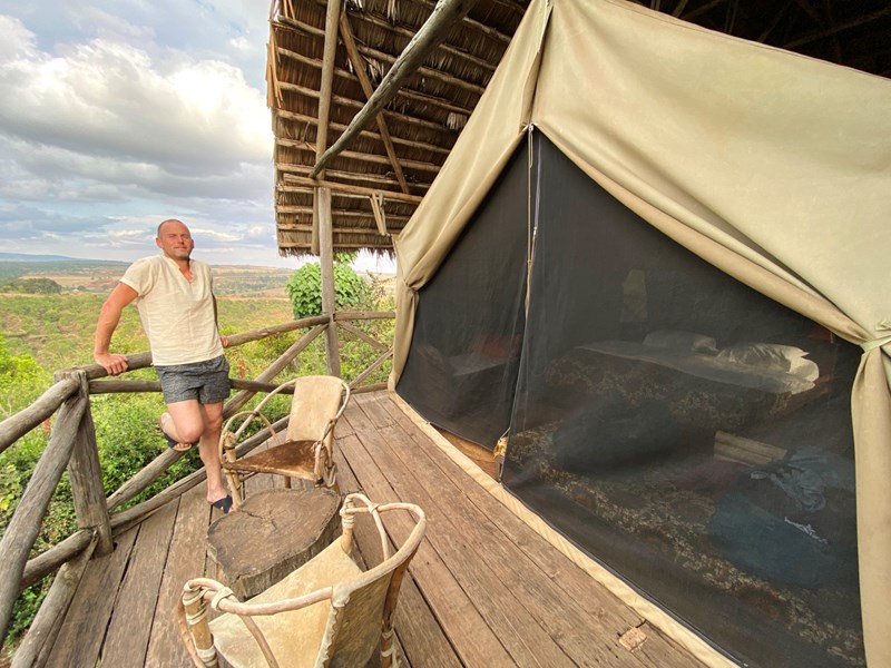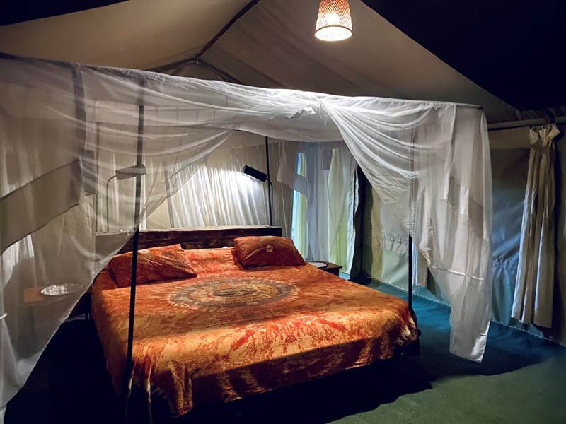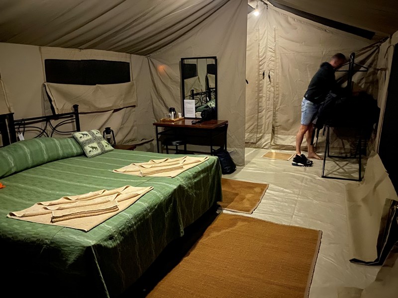 Our first accommodation after a fantastic first day in the Serengeti. Thorntree Camp is a tented camp permanently located in the center of the park, in the Seronera Valley. This area is home to wildlife all year round due to the constant presence of water. This area is known for spotting lions, leopards and large herds of elephants. You really are in the midst of nature, without any fences, gates or walls. Around our tent we saw three more leopards in the evening and when we were escorted back after the fantastic vegan dinner, there was a hyena just 5 meters away that continued to sniff around the tent all night. An amazing experience!