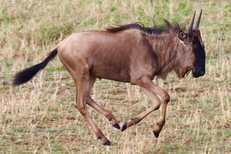 The north was a lot greener, because the rainy season had just passed here. Between July and October, the herds cross the Mara River to return south. You may know these dangerous, spectacular 'river crossings' from the nature documentaries. However, you need to be lucky and patient as you never know when a herd of wildebeest will gather at the river bank and consider the area safe enough to make the crossing. They first carefully check the strength of the current and the presence of crocodiles.