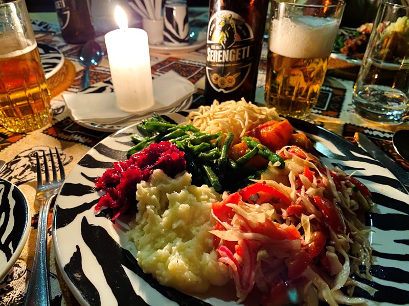 The full safari camp experience, with roaring lions, laughing hyenas and “bush TV” aka a campfire. Serengeti Kati Kati is a mobile tented camp located in Central Serengeti, strategically located to cover the vast Serengeti plains. As with the other accommodations, the chef here was also very fanatic to put together a fantastic vegan meal for us. The walking buffet (in which the staff walks around the tables with the dishes) was super vegan-friendly and the vegan pancakes for breakfast were really delicious.