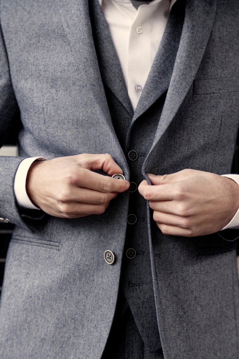 Erik is gaan uitzoeken bij z’n leveranciers en partners of ook alle laatste ‘verscholen’ dierlijke producten vervangen konden worden. Ook al is de stof vegan (bijv. katoen of linnen), traditioneel wordt er bijvoorbeeld voor het binnenwerk, het borststuk en de schoudervulling van het jasje gewerkt met paarden- of kamelenhaar. En veel mooie knopen zijn bijvoorbeeld gemaakt van hoorn, been, parelmoer of… caseïne (ja echt!). Enzovoorts… Aarden heeft nu alles uitgeplozen: Hij heeft prachtige nieuwe vegan stoffen laten weven, nieuwe knopen laten drukken, de vilten onderkraag en het binnenwerk vervangen. Je kunt hier nu terecht voor vegan pakken van (gerecycled) katoen, linnen, hennep en bamboe, met knopen van onder andere steennoot, metaal en hout.