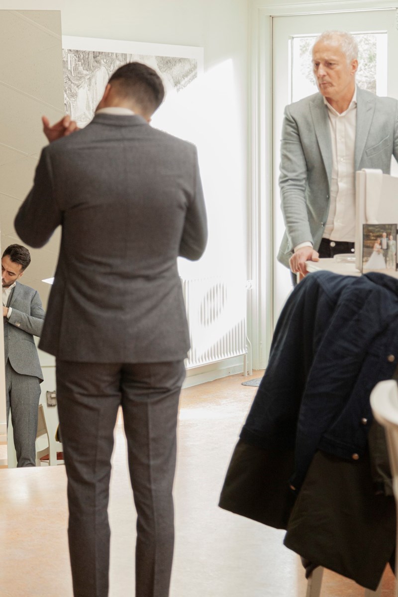 Bijna niks is zo intransparant en vervuilend als de mode-industrie, dus ik wilde dat het pak ook op alle andere manieren verantwoord was. Aarden werkt samen met Enschede Textielstad met duurzame en gerecyclede stoffen van de hoogste kwaliteit. Aarden produceert de vegan pakken in Europa, de kleermakers krijgen een eerlijk loon en kinderarbeid is uiteraard taboe. Daarnaast ondersteunen ze projecten in Brazilië die regenwouden beschermen en hebben ze de laatste 5 jaar meer dan 500 voetbalvelden aan regenwoud beschermd! Bovendien kun je bij Aarden je oude pakken inleveren om te laten recyclen waarbij je €100,- tegoed krijgt voor een nieuw, duurzaam pak, of je kunt een pak leasen voor die ene gelegenheid! Ook de typische bruidegom-das gebruik je na die ene dag nooit meer, dus ook die mag je weer inleveren. Wel zo duurzaam, en scheelt kosten!