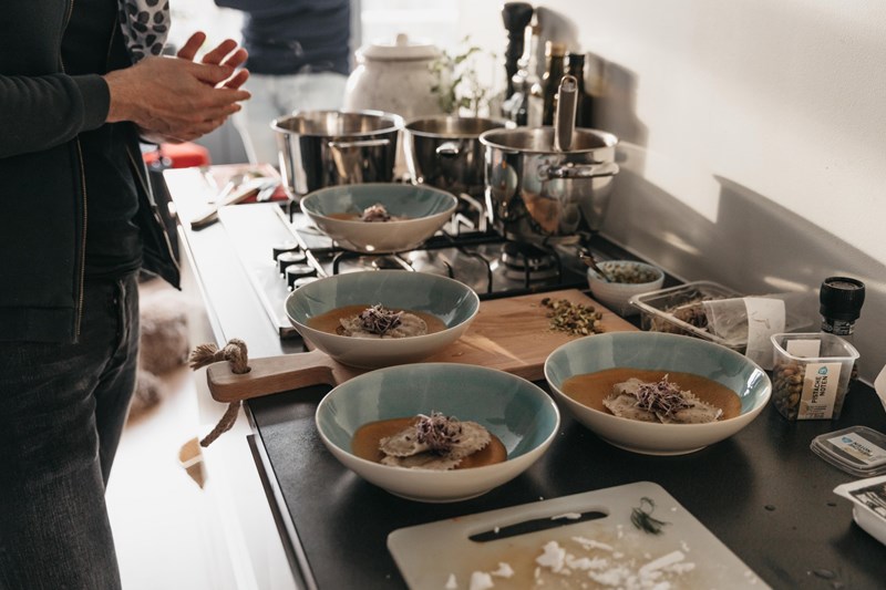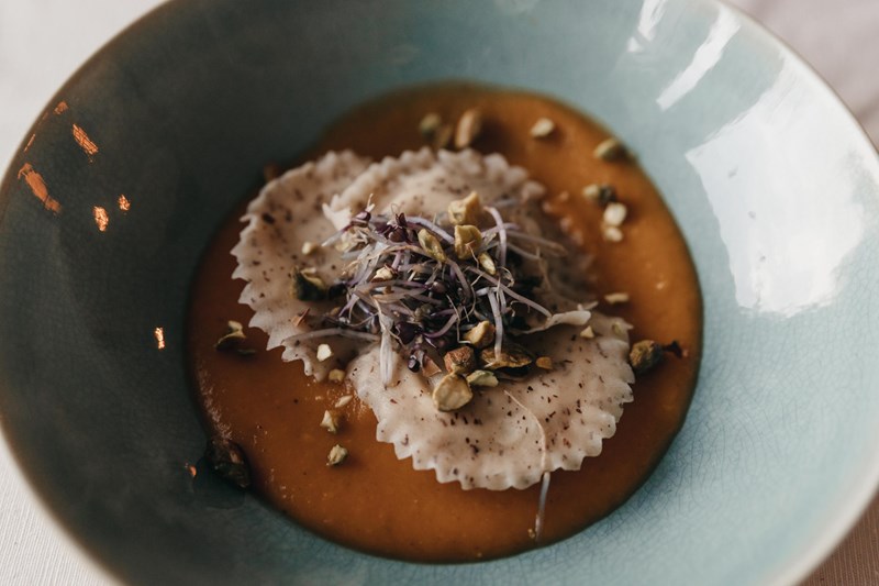 Voorgerecht: Ravioli met pompoen-saffraan saus