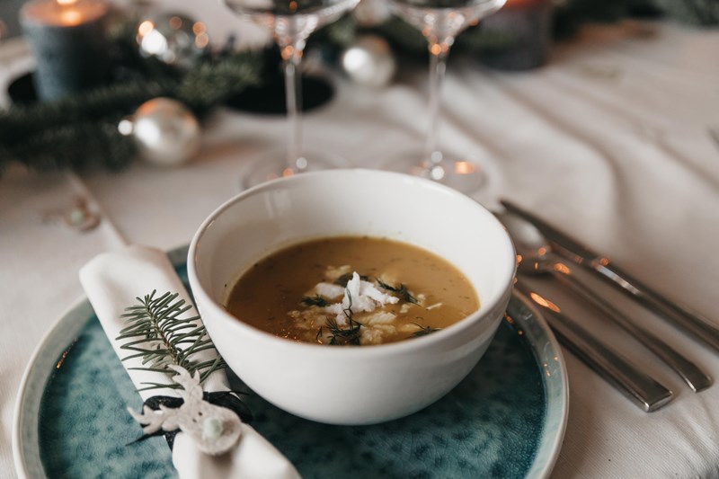Voor dit kerstmenu hebben we vier bijzondere, kerstige, op elkaar afgestemde recepten ontwikkeld. Tijdens het vele proefkoken heb ik dit kerstdiner al vaak beleefd en ik durf je te verzekeren dat iedereen – van vleeseter tot veganist – hiervan zal smullen. Het menu ziet er als volgt uit: