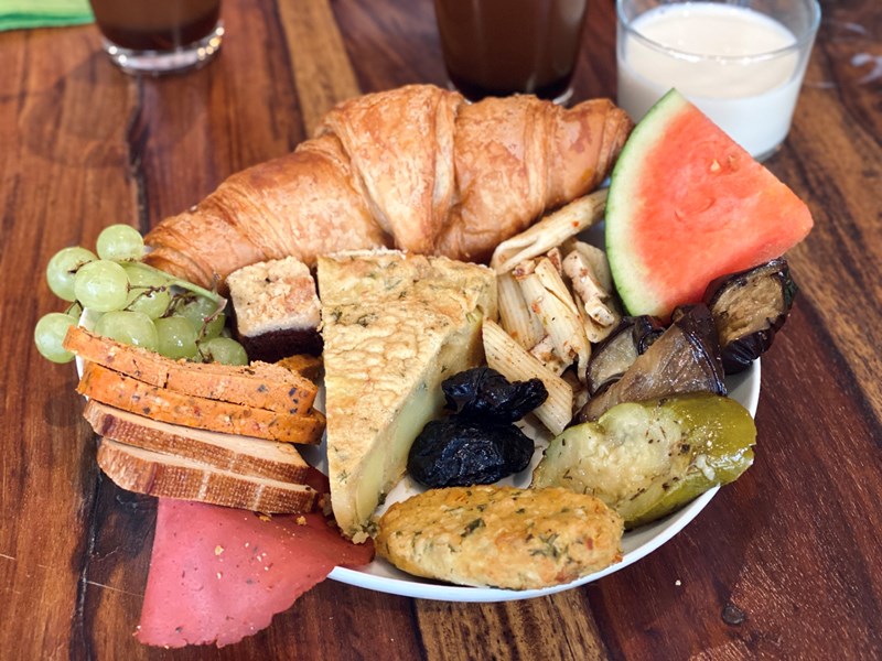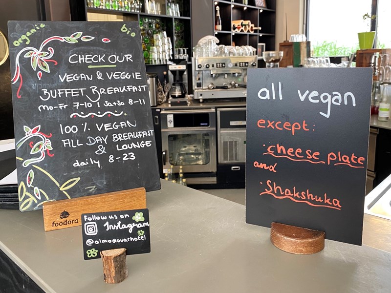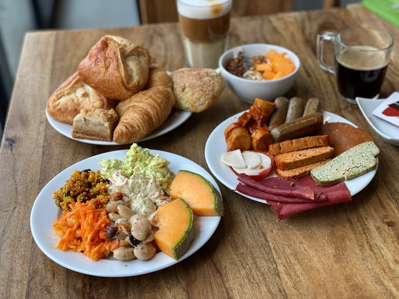 Highly important, but hotel-food is never that good or vegan-friendly, right? WRONG! The breakfast at Almodovar's restaurant Bistro Bardot is incredibly diverse, rich, fresh, 100% organic and 100% veggie (99% vegan). Whatever type of breakfast-eater you are (sweet, savoury, fruity yogurt bowls or sandwiches and croissants with cheese, spreads and cuts) they have it all, vegan. The friendly and helpful staff keeps the freshly baked goods, fruit, drinks and snacks filled and on top of that, we got to try some very original vegan breakfast dishes that we didn't know before. The absoluut highlight: the creamy vegan pudding bread!! If they have them, grab them!