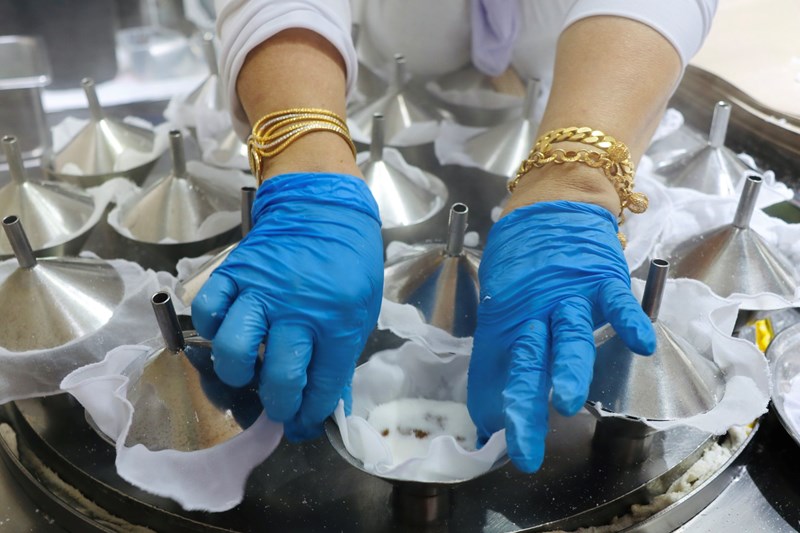 Het is niet alleen heerlijk, maar de techniek waarmee het is gemaakt is fascinerend. Ze wisselen de roestvrijstalen mallen continu om en serveren bestelling na bestelling voor een belachelijk lage prijs ($ 2,5 voor 5 stuks) gezien hoe arbeidsintensief het is. Ze openen meer locaties in heel Singapore, maar Haig Road is de originele.
