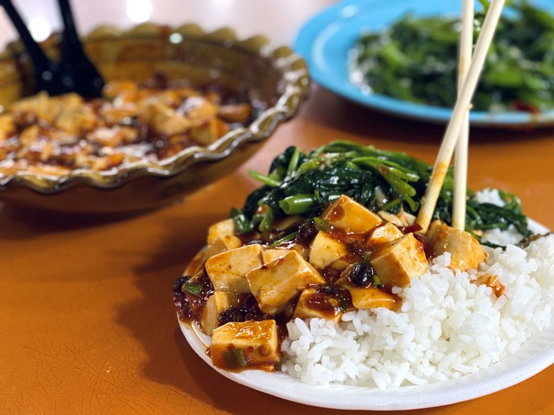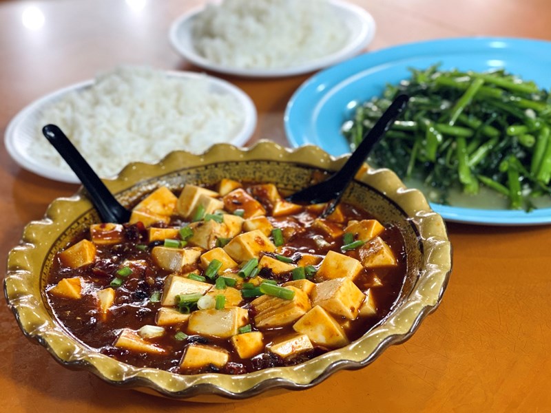 Wordt meestal gemaakt met tofu en gehakt, maar er zijn kraampjes te vinden die het serveren met alleen de heerlijke, zijdezachte tofu in de smakelijke, typische Szechuan-kruidensaus.