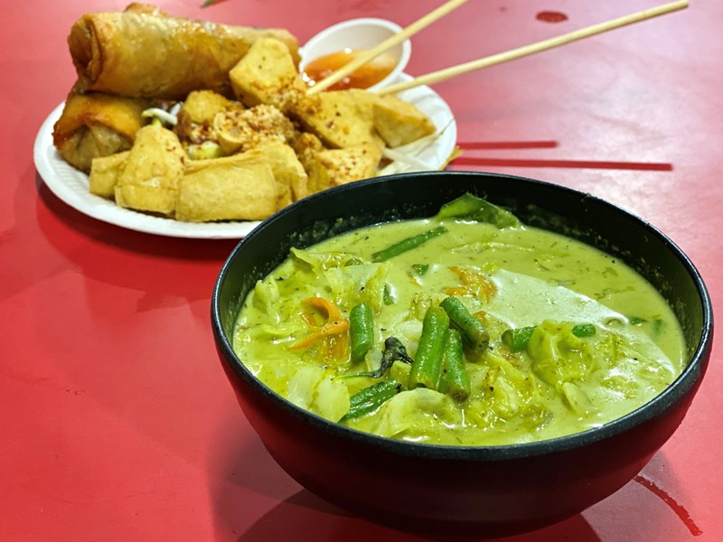 Little India was qua eten mijn favoriete wijk van Singapore. De muziek, de winkels, de mensen, de tempels en het eten geven je echt het gevoel dat je in India bent. De Indiase keuken is natuurlijk erg veganistisch, dus het vinden van plantaardige gerechten in India was vrij eenvoudig. Zorg er wel voor dat je dubbel controleert op ghee, die ze vaak gebruiken.