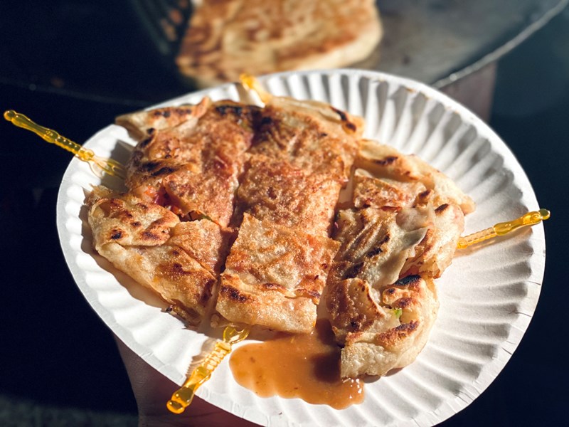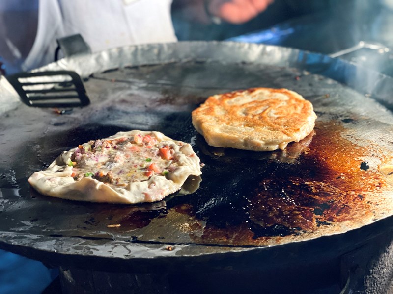 Een zeer populaire, vettige schijf deeg gevuld met allerlei ingrediënten. Heel vaak met vlees en eieren, maar er zijn verkopers die ze op verzoek volledig veganistisch kunnen maken, boordevol groenten en eventueel overgoten met pittige saus.