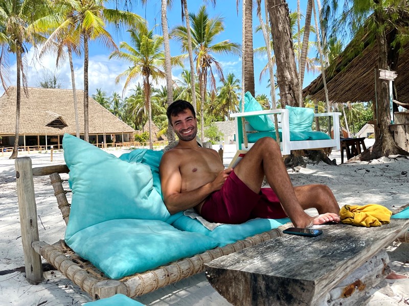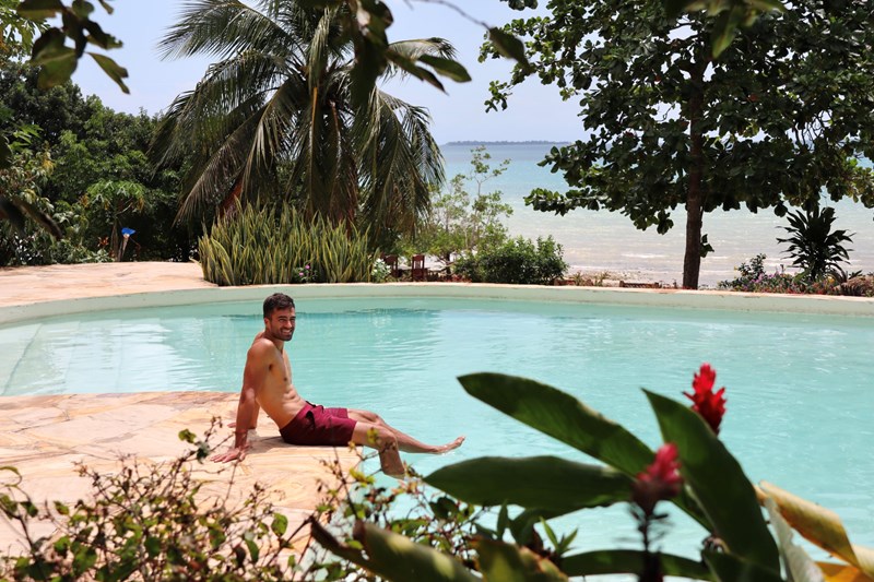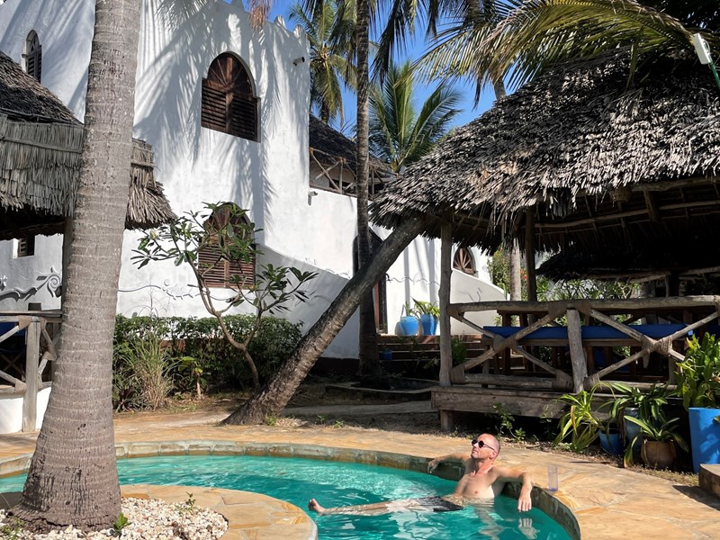 Hodi Hodi betekent 'klop klop?' waarop het antwoord hier altijd 'Karibuni' is: je bent welkom. Julia Bishop, de eigenaresse, geeft duidelijk veel om zowel mens als planeet en dat is zichtbaar in alles wat er wordt besloten in dit prachtige paradijsje. Mensen uit de lokale dorpen krijgen hier werkgelegenheid en worden geschoold om hun gemeenschappen te ondersteunen, ze minimaliseren het gebruik van plastic, ze zijn zeer bewust van hun water- en energieverbruik en ze hebben de prachtige strandhuizen gebouwd van lokaal geproduceerde materialen. Het zwembad is klein doch comfortabel, maar we hebben er toch nauwelijks tijd in doorgebracht. Het strand recht voor Hodi Hodi, met enorme palmbomen die elk moment van de dag voor schaduwgelegenheid zorgen, is naar onze mening het mooiste stukje strand van Zanzibar.