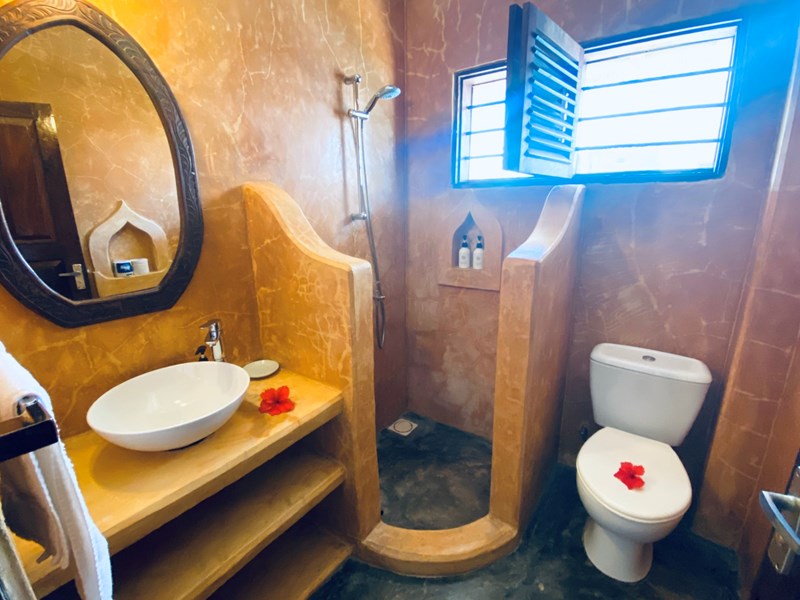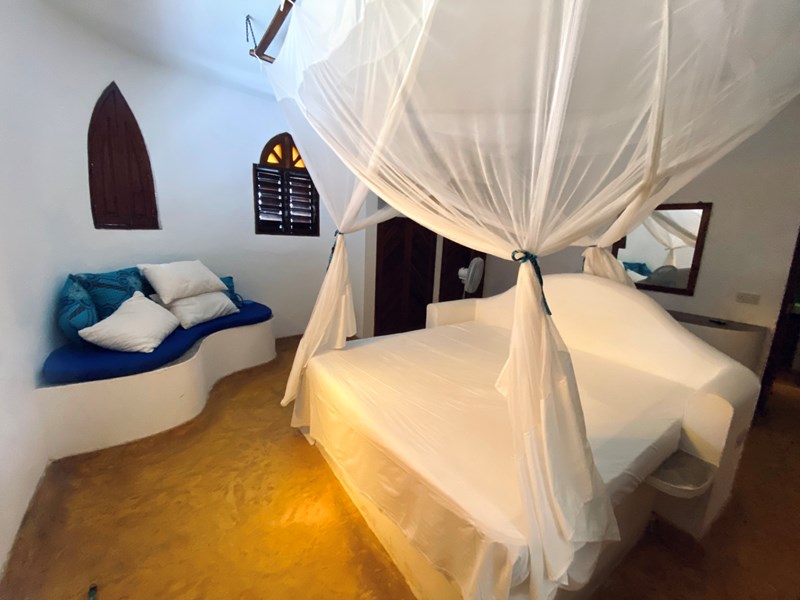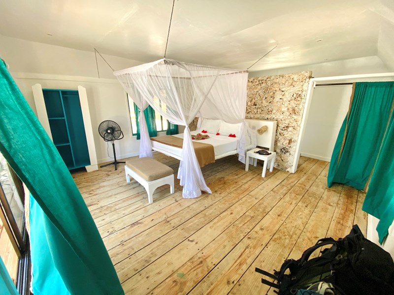 Blue Oyster is een zeer comfortabel, gezellig familiehotel, direct aan het prachtige witte strand van Jambiani. Veel andere accommodaties en touroperators op het eiland waarmee we spraken, noemden Blue Oyster "het ultieme duurzame voorbeeld" met betrekking tot hun milieuvriendelijke en sociale beleid. En dat werd tijdens ons verblijf wel bevestigd. Duurzaamheid is hier overal zichtbaar. Bij de receptie ligt een enorm boek met alles wat ze doen om het milieu te beschermen, hun voetafdruk te verkleinen en lokale gemeenschappen te ondersteunen. Als onderdeel van hun groene missie hebben ze geen zwembad of airconditioning, maar gelukkig zijn de kamers koel, hebben ze een ventilator en ligt de oceaan recht voor je neus. De badkamers in Arabische stijl zijn absoluut prachtig en het personeel is erg vriendelijk.