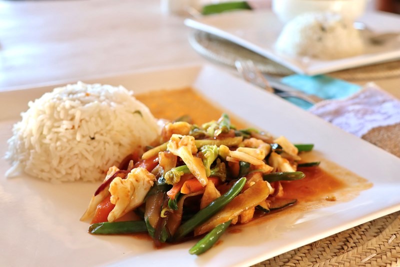 Mangrove Lodge heeft een eigen gezellig restaurant en bar waar diverse, heerlijke vegan gerechten kunnen worden geserveerd. Dat is maar goed ook, want Mangrove Lodge ligt best afgelegen (in een mangrove) waardoor je niet veel restaurants of streetfood-stands in de buurt hebt waar je heen kunt lopen. Als je ze laat weten dat je plantaardig eet, zullen ze naast het standaard ontbijtbuffet ook een ongelooflijk veganistisch ontbijt voor je bereiden.