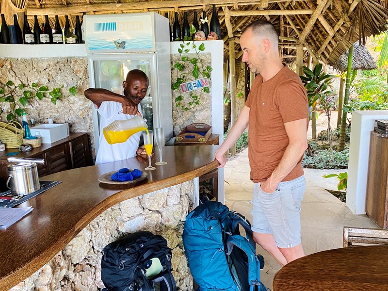 Maar misschien is de belangrijkste reden om hier te komen, is het eten. Aan het einde van onze Tanzania-reis kwamen we tot de conclusie dat het eten dat we bij Hodi Hodi kregen, het lekkerste eten van de hele reis was. En dat zegt veel, want we hebben echt veel geweldig eten geproefd op Zanzibar en het vasteland. In lijn met hun liefde voor het milieu en vooral het prachtige koraalrif voor hun kust, dat door de visserij uitgeput en vernietigd wordt, overwoog Julia al om zoveel mogelijk over te gaan op volledig plantaardig met lokaal en duurzaam geproduceerde ingrediënten. Na tijdens ons verblijf met ons te sparren, besloot ze als eerste hotel van Zanzibar om 100% vegan te gaan! Gelukkig weten de koks al heel goed hoe ze waanzinnige veganistische maaltijden moeten bereiden, zoals we hebben ervaren.