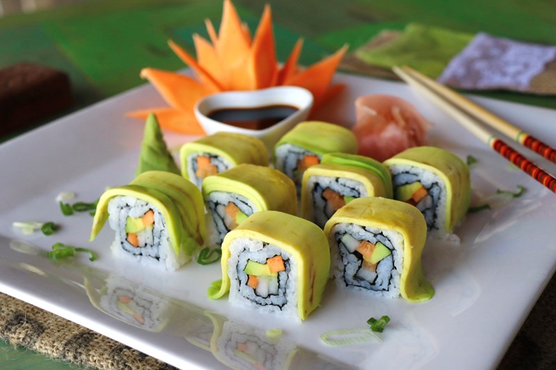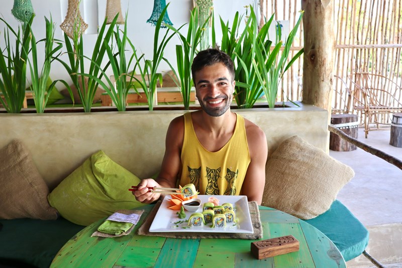 Cristal Resort heeft een mega toffe cocktailbar en restaurant aan het strand, met stoelen en schommels geïntegreerd met de palmbomen en hun wortels. Hoewel de meeste medewerkers nog nooit van het woord "vegan" hadden gehoord, hebben ze na ons bezoek zeker wel! En toen ze het eenmaal doorhadden, deden ze hun uiterste best om ons in de watten te leggen. Dat omvatte heerlijke veganistische pannenkoeken bij het ontbijt, de lekkerste Thaise curry die we sinds Thailand hebben gehad (de chef-kok is Thais!) en prachtige veganistische sushi van de sushimeester.