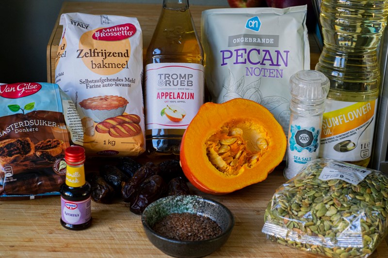 - Voeg vervolgens de noten en dadels toe en meng goed. Giet het beslag in de oven vorm en bak 55 minuten.