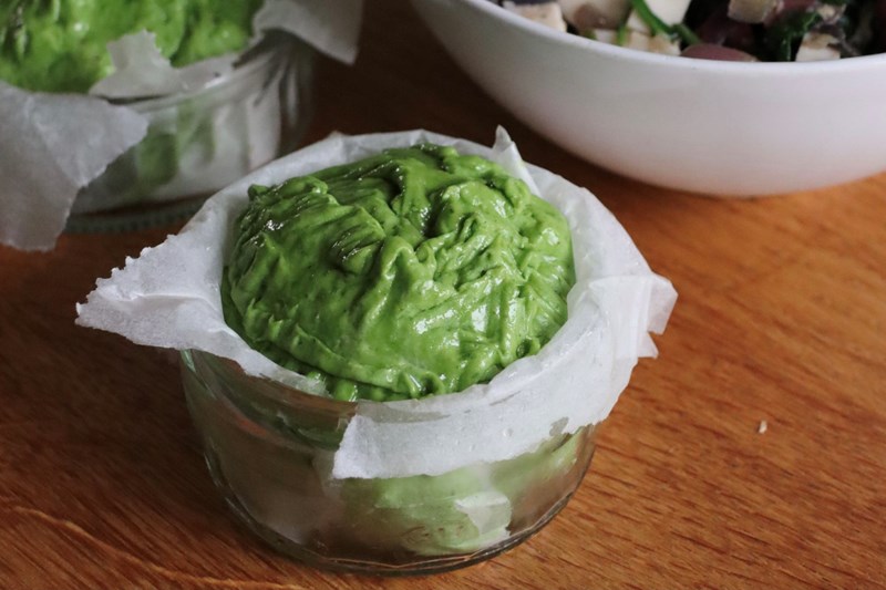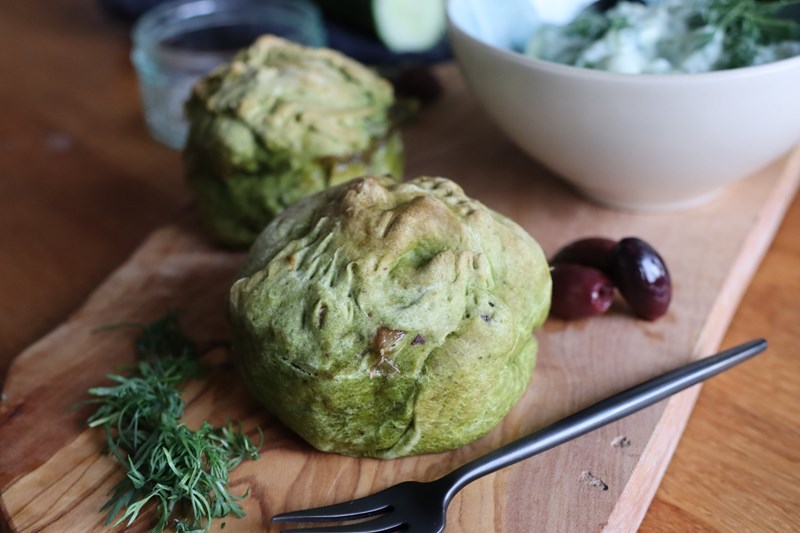 Terwijl de hapjes in de oven staan, kun je rustig de tzatziki maken. Deze simpele, vegan versie van deze traditionele dip, geeft deze hapjes meteen een extra Griekse smaak.