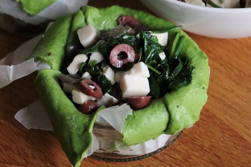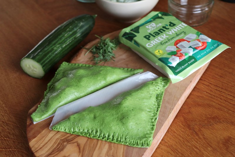 Ik vind het echt fantastisch dat er steeds meer vegan alternatieven voor feta en andere kazen verschijnen! Ik gebruikte hier de nieuwe Plant’d Greek White van Dodoni. Een wat stevigere vegan feta (dus perfect als je stevige blokjes nodig hebt), totdat je ‘m smelt! Dan wordt ie zó smeuïg, dat de gesmolten feta pruttelend uit sommige bladerdeeg hapjes vloeide. Heerlijk! Gesmolten vind ik de smaak ook verreweg het best, dus zo zou ik 'm vooral aanraden.