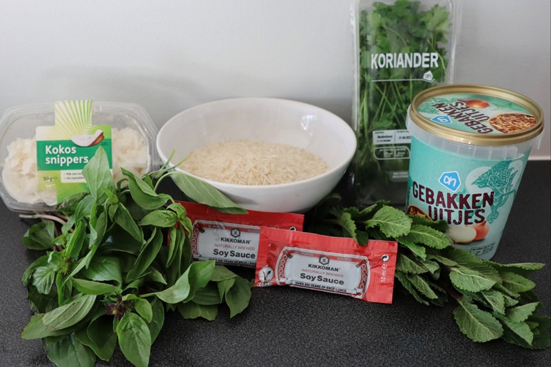 - Verse kruiden naar smaak: munt, koriander, Thaise basilicum