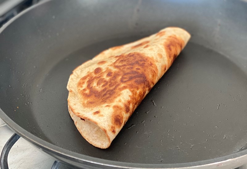 - Bak aan beide kanten tot de wrap mooi bruin kleurt en de kaas goed gesmolten is.