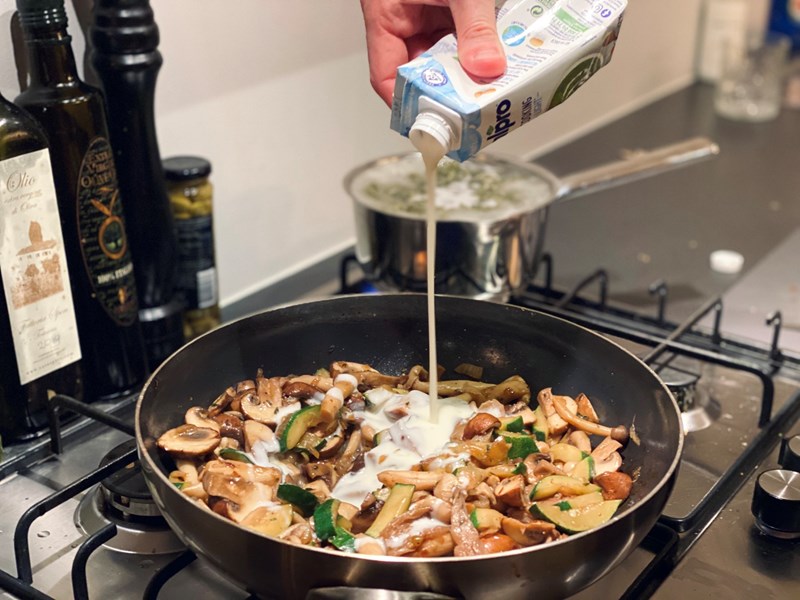 Tip: het lekkerst is om de VeggiHap pasta nog even mee te laten pruttelen in de pan!