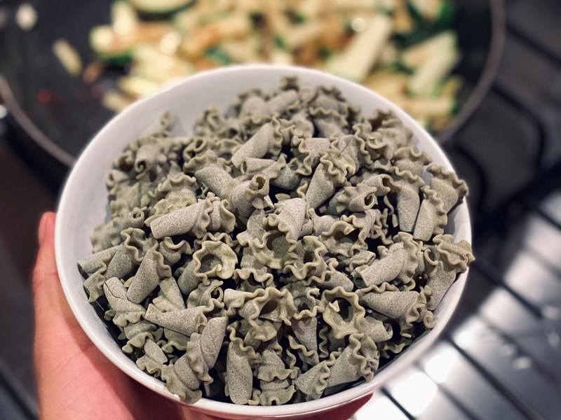 - 80-100 gram VeggiHap groentepasta (nog even niet in huis? Andere volkorenpasta of groentepasta kan ook)