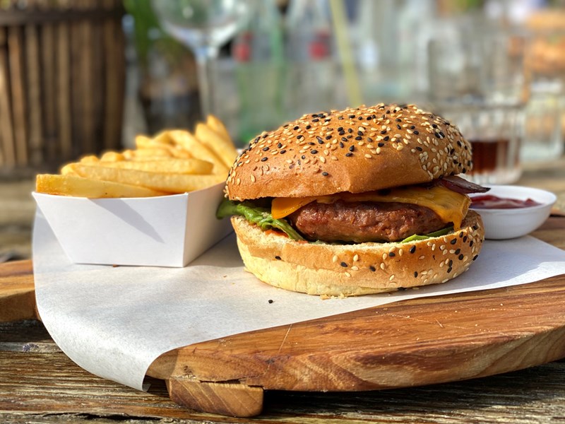 Het is zeker geen vegan strandtent zoals Pele in Hoek van Holland. Het (redelijk jonge en misschien wel redelijk nieuwe) personeel had bij elke "Is dit gerecht ook vegan?"-vraag even een verwarde en licht-paniekerige blik, maar het werd steeds netjes gedubbelcheckt.