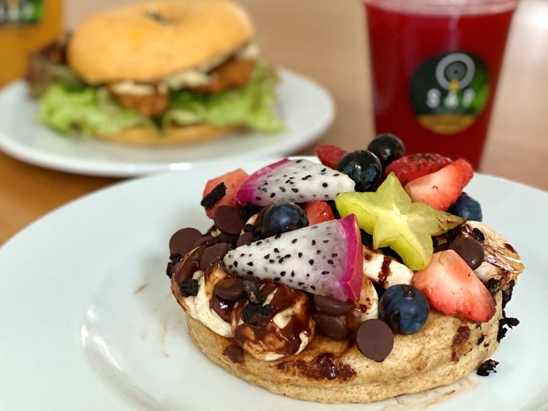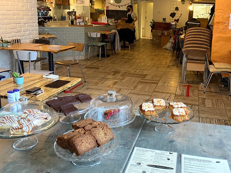 De zaak ziet er al goed uit (ondanks de corona-opstelling en bouwwerkzaamheden toen ik er was), maar de gerechten zien er nog véél beter uit! De chef steekt duidelijk veel aandacht en liefde in zowel het ontwikkelen van de smaakvolle en kleurrijke gerechten als in het opmaken van de borden. Je kunt hier terecht voor ontbijt, koffie, lunch, high tea, borrel en take-away. Op de kaart vind je onder andere verschillende vegan smoothie- en havermoutbowls, rijkelijk belegde broodjes en sweets. In tegenstelling tot Preps en SAP zijn de pannenkoeken hier helaas (nog) niet vegan, maar de chef denkt graag met je mee over het veganizen van andere opties, heb ik gemerkt.