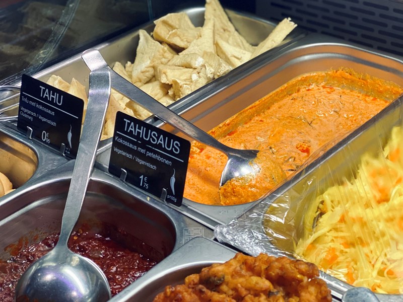 De vriendelijke en gepassioneerde eigenaresse legde uit dat zij de vraag naar meer vegan duidelijk ziet toenemen en haakt hier succesvol op in! Voor €40 haal of bestel je hier een rijke, vegan rijsttafel waar je U tegen zegt, of je stelt zelf je maaltijd samen uit de enorme vitrine waar je direct trek van krijgt. Voor Gembira zou ik prima een paar uur in de auto stappen ;)