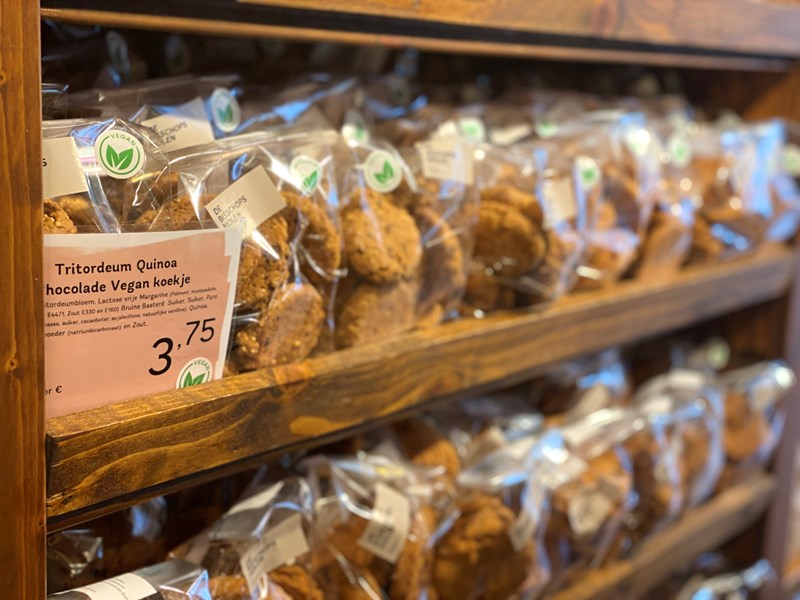 VLAAI, laten we daar eens mee beginnen! Ik heb mij laten vertellen dat ik niet naar Maastricht kon gaan zonder flink vlaai te eten, dus dat heb ik zeker gedaan. De Bisschopsmolen is traditionele Limburgse bakkerij en smaaklokaal en is een begrip in Maastricht. Ze verwerken granen uit het Limburgse land tot heerlijke broden en smaakvolle vlaaien. Ze zijn hartstikke vegan-friendly, want naast een ruim aanbod vegan vlaaien zie je in hun prachtige zaak ook overal groene ‘vegan’-stickers op de koekjes en andere lekkere baksels.