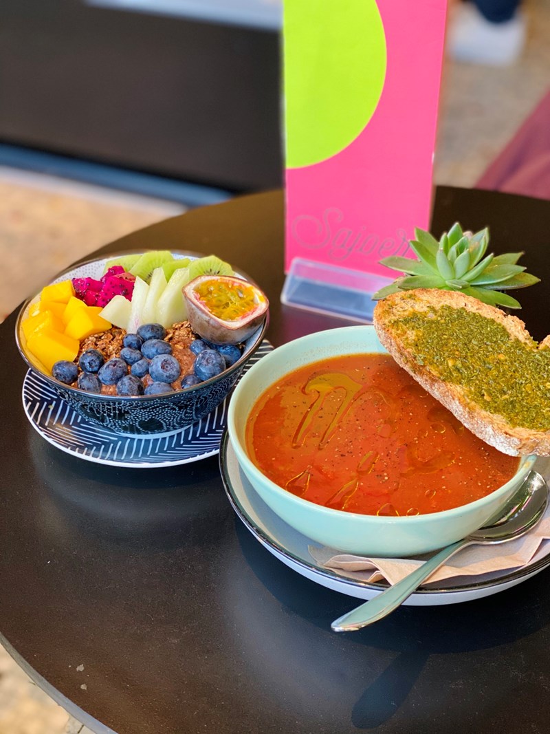 Sajoer is één van die tentjes waar je werkelijk de hele dag kunt zitten. De vele planten maken het een supertoffe groene oase en de speelse, hippe inrichting maken het een hele chille hangout. Maar het belangrijkste is de kwaliteit van hun producten. Naast de vele sapjes waar ze bekend om staan, hebben ze heerlijke, verse insta-worthy bowls. Hun Açaibowl heeft zelfs de prijs 'Beste bowl van NL & BE' gewonnen! De flurry bowl vind ik ook fantastisch, net als hun bananenbrood en cinnamon rolls . Ze verkopen er ook de bites van SUE!
